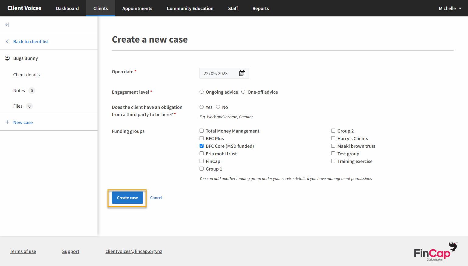 3 - Complete the Client Case form, paying particular attention to the *Required fields. There is an explanation of each of the fields at the bottom of this article.